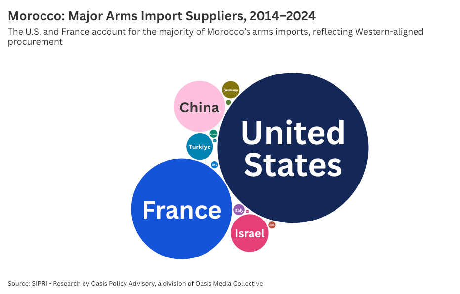 Morocco, by contrast, has built its defense architecture firmly within the Western orbit. The US supplies 59% of its arms imports, France another 26%. Both countries dominate Morocco’s aircraft weaponry pipeline. Israel has likewise emerged as a growing important partner, providing 3.7% of Moroccan arms imports. At least 51% of Rabat’s defense missiles now come from Israeli sources, according to DW.