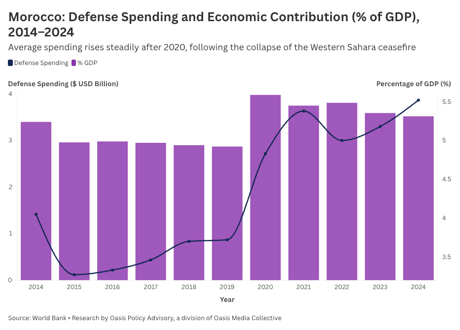 While Rabat did boost spending following the 2020 ceasefire collapse—jumping from $4.83 billion to $5.38 billion in 2021, a 44% baseline increase—its investment philosophy emphasizes controlled growth over shock spending.